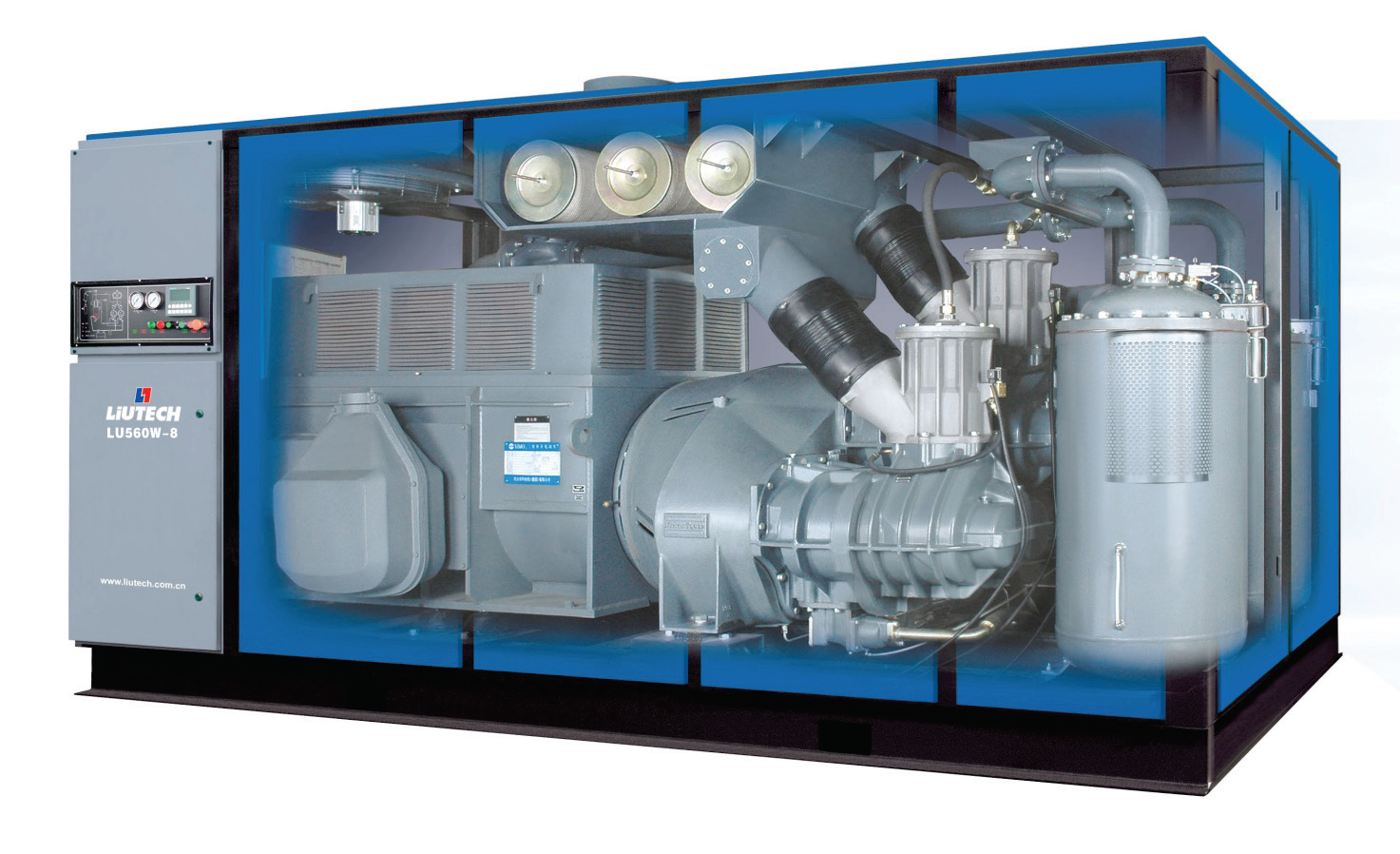 2014年 推出了全新的LUT355~900系列无油离心压缩机及LUF55-90 陆虎系列无油螺杆压缩机组